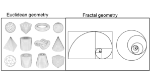 Figure 7: Euclidean geometry is a mathematical system based on two-dimensional and three-dimensional shapes; fractal geometry is a branch of