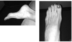 But check the cuboid! Can manual rotation produce supination? And in a sidelying position with pressing, can the cuboid or metatarsals four and five go anatomically inferior vs. the lateral malleolus? In the Short-arch Internal, generally not, so one mechanism of an external-type short arch is missing. Why? In my practice, most Short-arch Internals are women who have worn high heels. The toe-box generally forms an incipient or fully developed bunion, often unilaterally. The toe-hinge is usually stuck in something close to a 90? angle by the extensors. But the good news is that this compressed toe box often hides an ADM that, with a little practice, develops robust movement. But watch out for fake Internals! Feet that don’t fit the Internal-External pattern may indicate that disorganization is even deeper and more pervasive than my little shortcut indicates. Unilateral or bilateral internal femoral rotation combined with valgus knees indicates somebody even less functional than a Short-arch Internal. In my experience, this combination of traits often manifests deep shame and fear – in either gender.