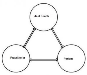 Once we make the choice to allow this layer of information into the session space, our intuitive exploration can really begin to take off. If we conceptualize this potential of health as a relationship that both we and the client have individually, then as we connect and interact with the client, we have set up a structural-mental construct that has three points: ourselves, the client, and the potential for health (see Figures 2 and 3). While we maintain an awareness of this relationship dynamic, we can then track how this greater sphere of information vacillates as we proceed with our normal approach to the treatment session.