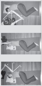Sidebar 1: Basic Upper Body Arcs From side-lying, with hips flexed to 45 degrees, start from a low “closed” position, with top arm extended, palm down near thighs (Figure 2).