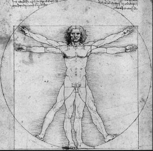 The idea behind this spatial awareness model is simple enough: it’s difficult to go anywhere if you don’t know where you are starting from. Also its corollary: without an embodied awareness of gravity, direction is difficult to find. Ostensibly, Vitruvius Man is about the proportions of the human body as applied to architecture. But when you look closely there is much more. The feet stand on a square, an ancient symbol of the earth, and the figure is inscribed within a circle, a symbol for the cosmos, indicating, as in our own work, the relationship between structure, integration, and higher consciousness.